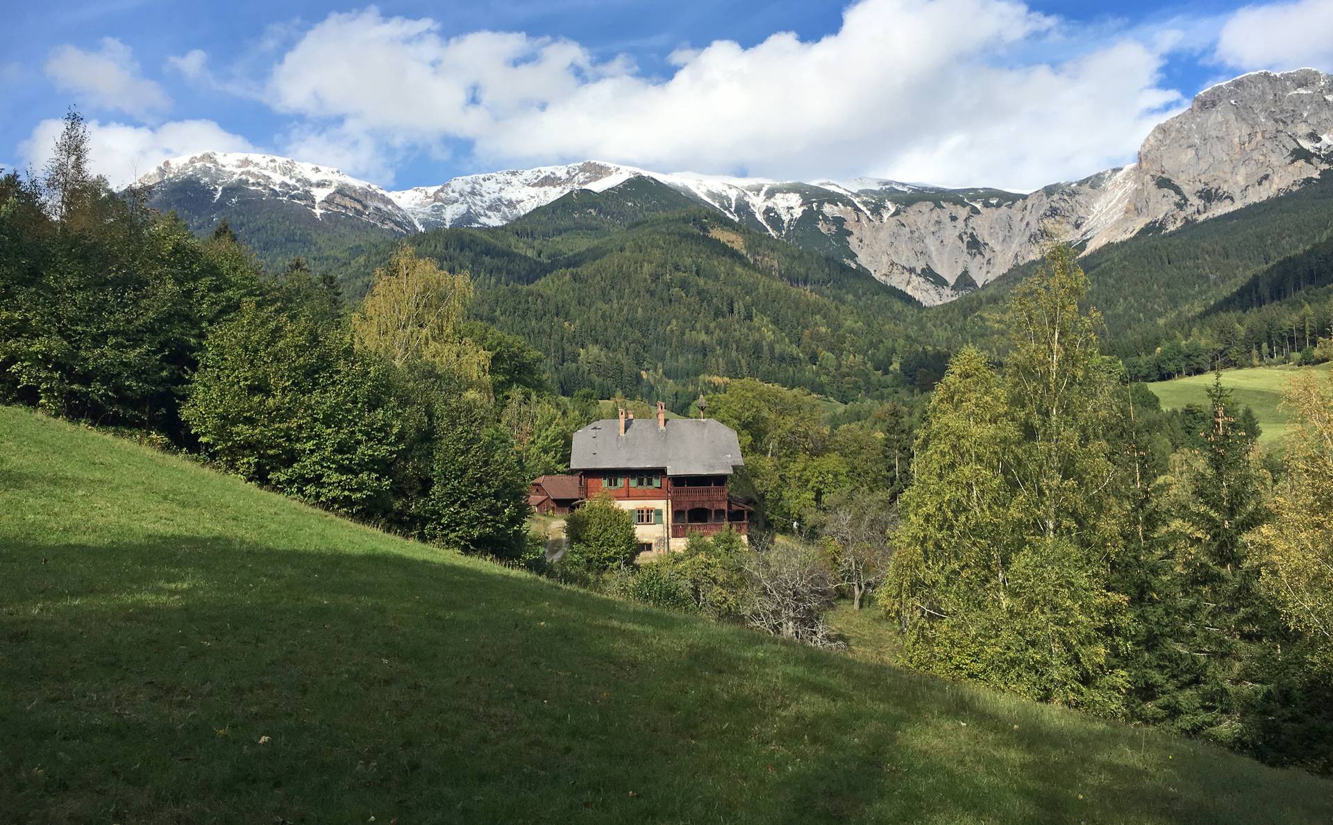 Historisches Landgut mit mehreren Nebengebäuden in beeindruckender Naturkulisse