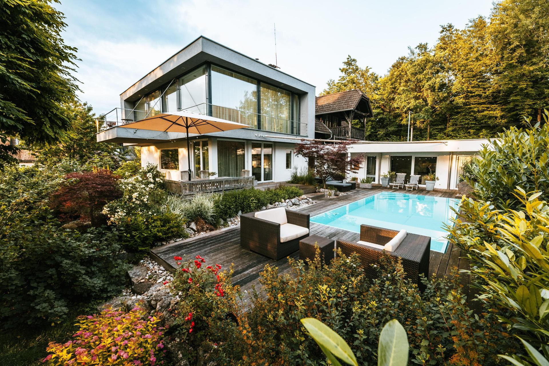 | Tags: | Arbeitszimmer, Außenansicht, Badezimmer, Esszimmer, Garten, Küche, Pool, Sauna, Schlafzimmer, Terrasse, Wohnzimmer |