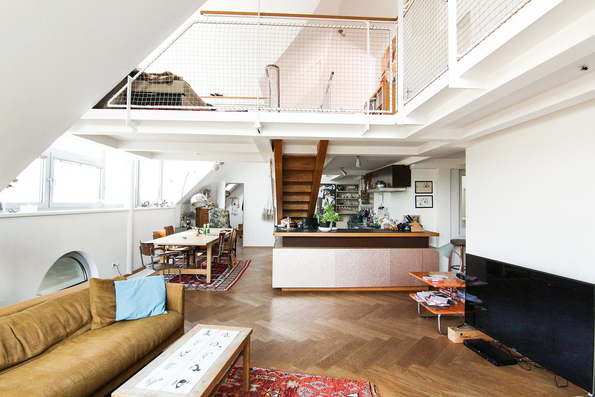 Tags: Badezimmer, Dachterrasse, Esszimmer, Galerie, Kinderzimmer, Küche, Stiegenhaus, Treppe, Vorzimmer, Werkstatt, Wohnungseingang, Wohnzimmer