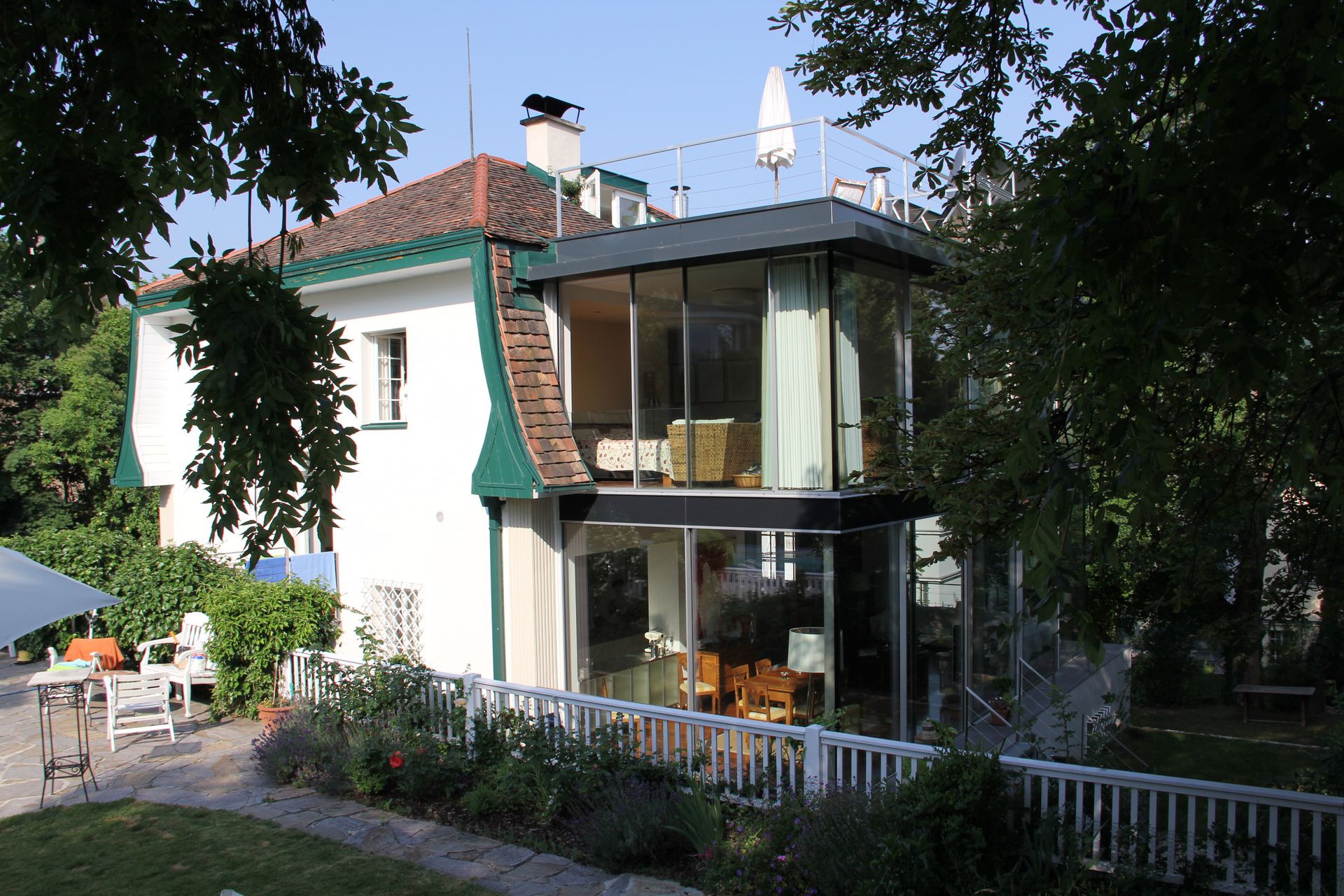 Gemütliches Familienwohnhaus mit modernem Anbau und großem Garten auf mehreren Ebenen