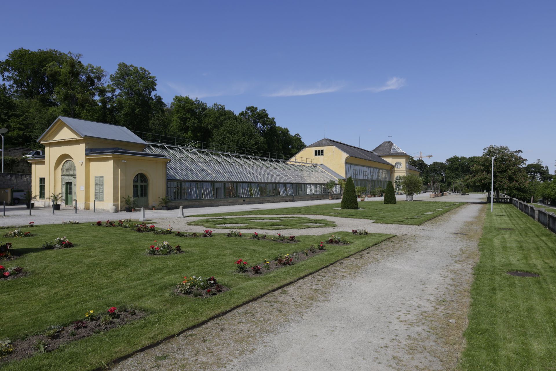 Orangery in the park of the baroque palace, the historic greenhouses and the outdoor area are used for events