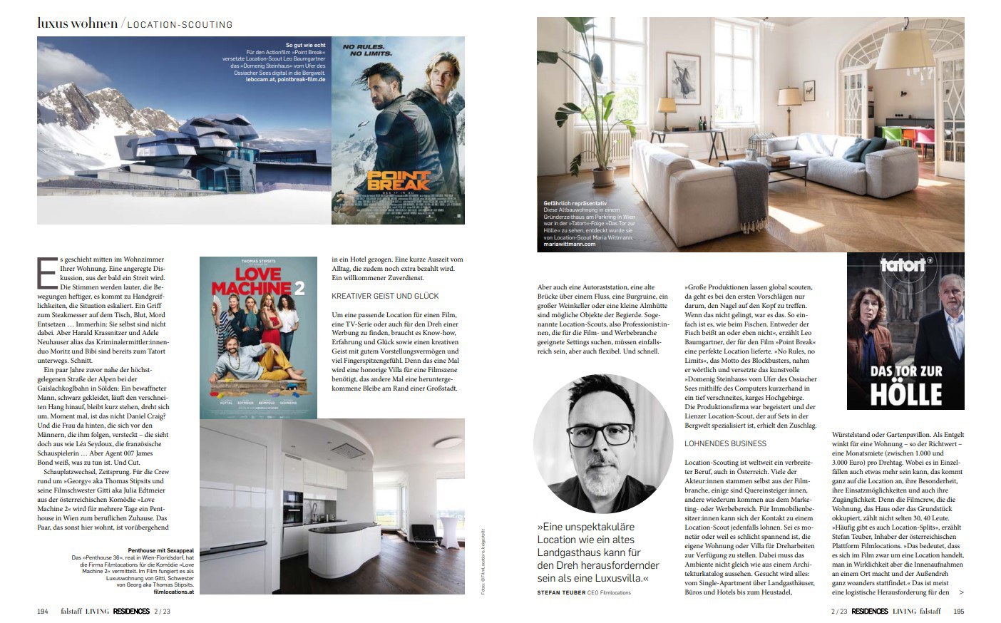 fallstaff LIVING Residences: A designer villa on the glacier or a Wilhelminian style salon on the Ringstrasse – the demands of cinema, TV and advertising film productions on locations are extremely diverse. Location scouts in conversation.